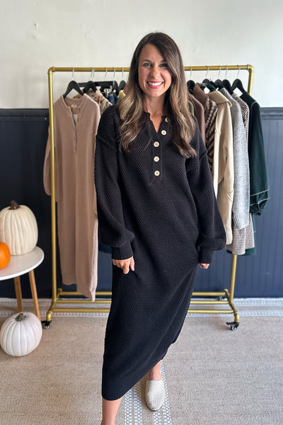 Button Down Knit Sweater Dress Black