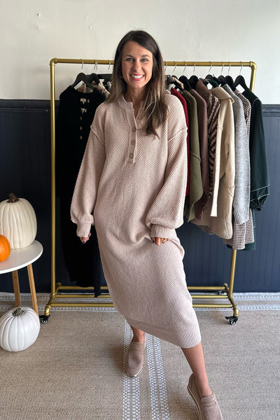 Button Down Knit Sweater Dress Taupe