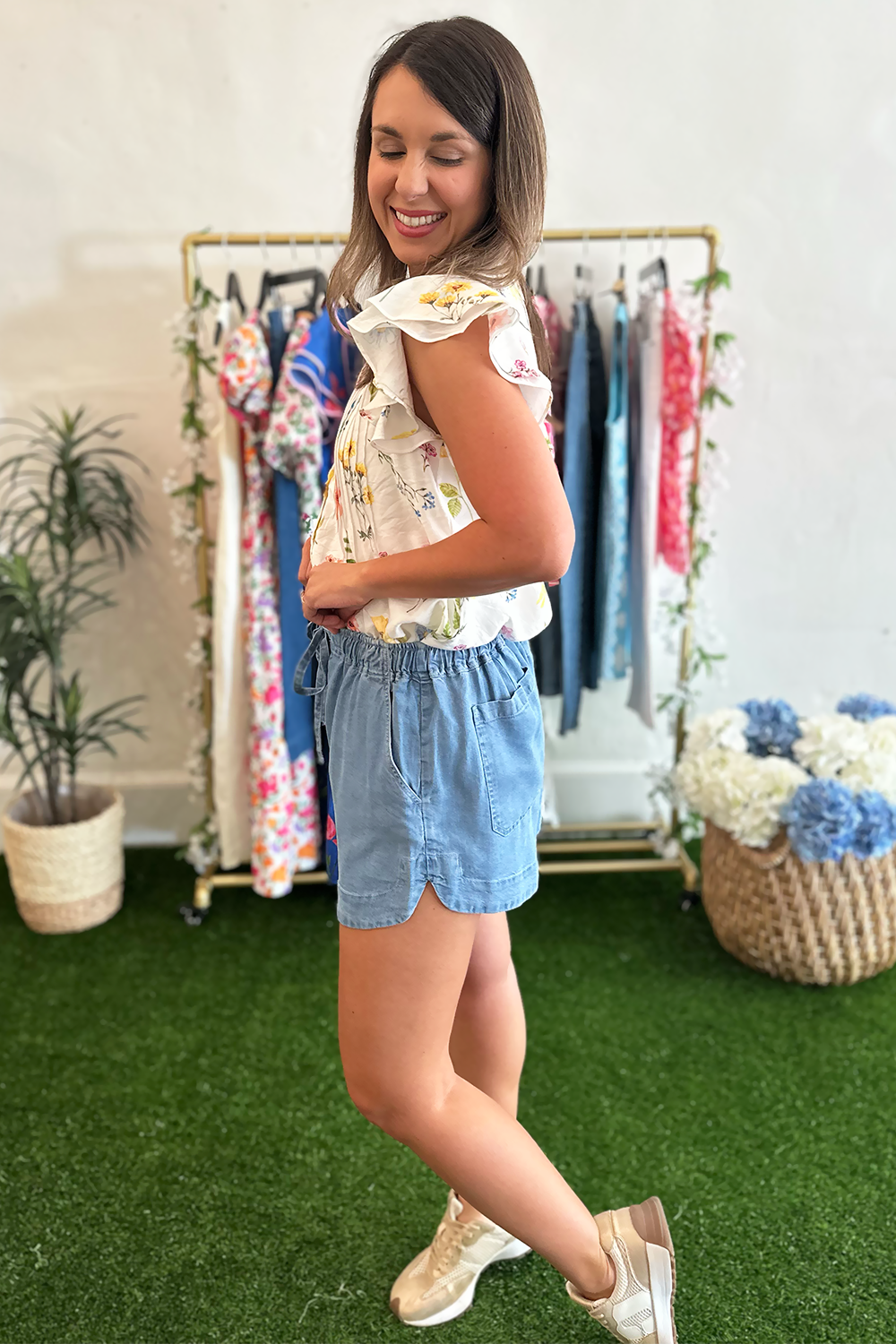 Your warm-weather wardrobe just found its new go-to. The Chambray Tie Waist Shorts are the kind of effortless piece you reach for on repeat — a relaxed chambray fabric with a tie waist that lets you dial in the fit exactly how you like it.