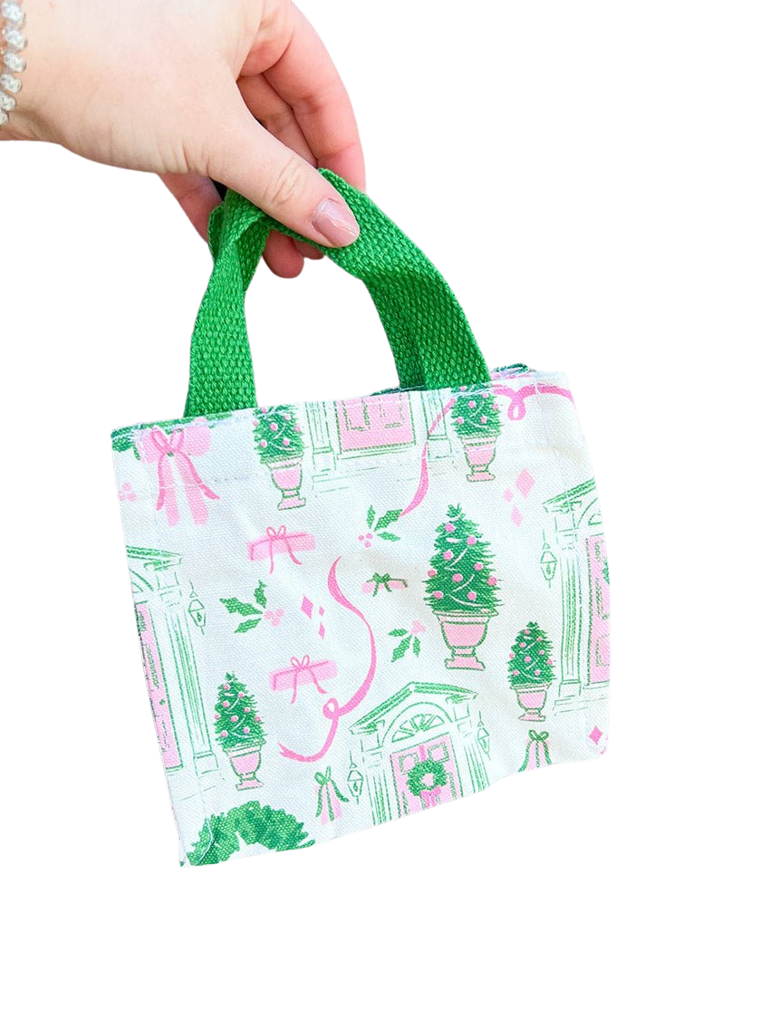 Don’t let the size fool you - our Petite Carry Tote is perfect for carrying small essentials with festive flair. Ideal for gift cards, jewelry, small treats, or stocking stuffers, it easily doubles as a charming gift bag or holiday favor pouch. Compact, lightweight, and beautifully designed, it’s the perfect little touch to complete your holiday celebrations.
