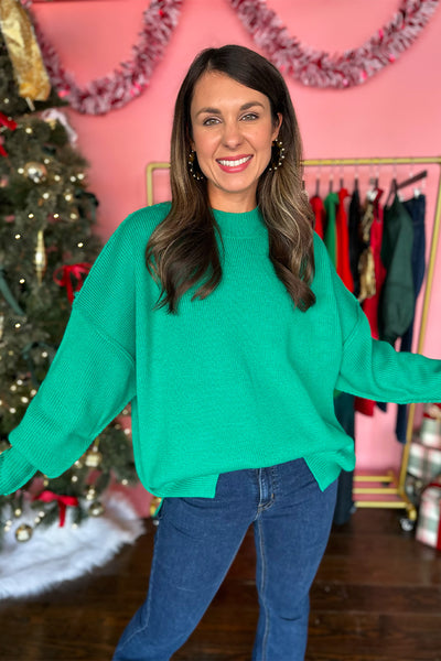 Solid 3/4 Puff Pleated Sleeve Blouse Green