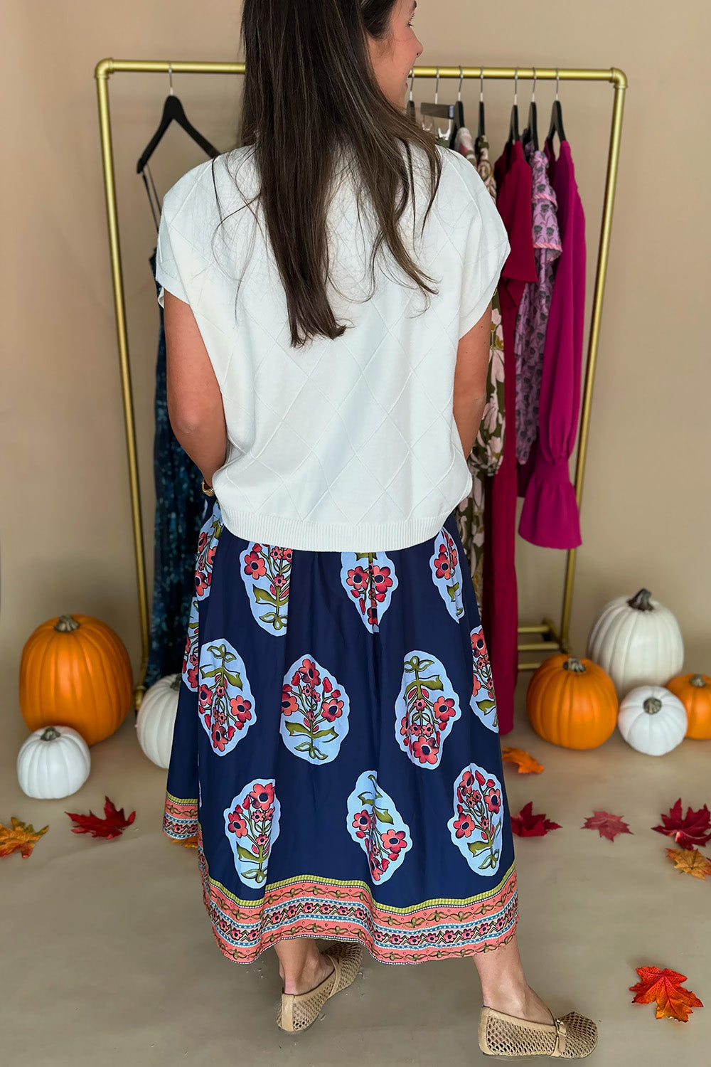 This cream knit top brings playful charm with its short sleeves and mock high neck, perfect for layering or wearing solo. The diamond pleated detail adds a touch of texture and whimsy, making it a fun and stylish choice for any occasion. Cozy meets cute in this versatile sweater! Model is wearing a size small.