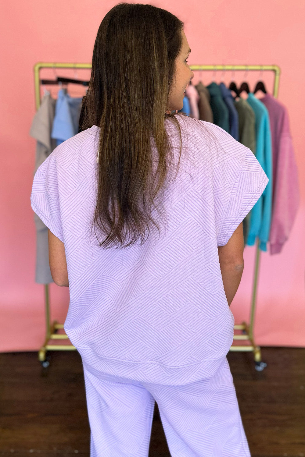 Effortless style meets ultimate comfort in this textured two-piece set. The cropped wide-leg pants feature a drawstring waist for a customizable fit, while the short-sleeve top completes the coordinated look. Perfect for lazy days at home, airport adventures, or quick errands around town—this set keeps you looking put-together without sacrificing comfort. Mix, match, or wear together for endless styling possibilities. Model is wearing a size small.